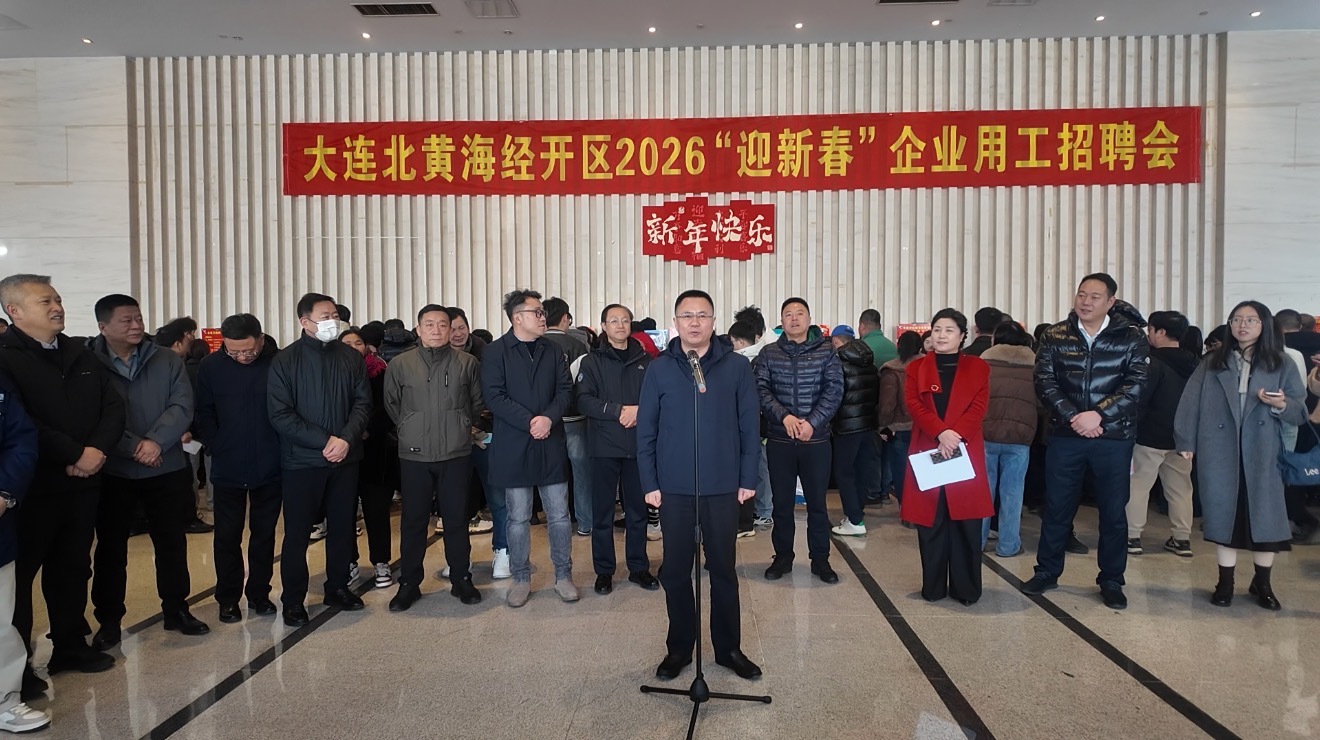 大连北黄海经开区管委会副主任贺忠正表示,将以此次新春招聘会为契机,持续下好营商环境“一盘棋”,为经开区高质量发展蓄势赋能。在人才保障上,深化与高校联动,围绕新能源、装备制造等主导产业开展“订单式”定向培养,实现人才供给与产业需求精准匹配。在服务效能上,坚决当好“金牌店小二”,完善项目全周期服务体系,落实企业诉求 24 小时响应、全链条闭环解决机制,切实打通服务企业“最后一公里”,真正为企业“招贤纳士”搭桥,为人才“安居乐业”铺路,让企业引得来、留得住、发展好。以人才集聚、服务升级、环境优化,全力构筑营商环境新高地,助力企业实现新年开门红。